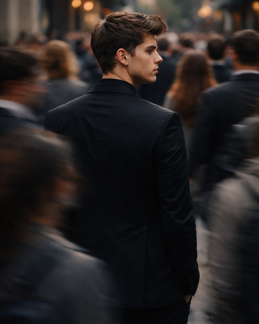 Ambiente tenso, movimentos ao redor fluem sem alterar você.